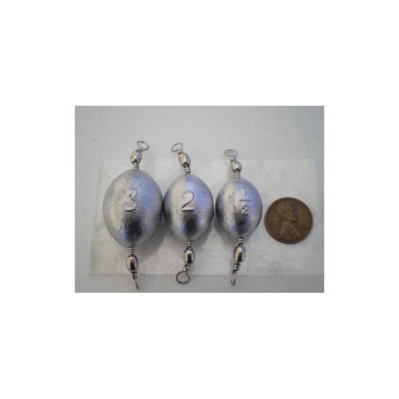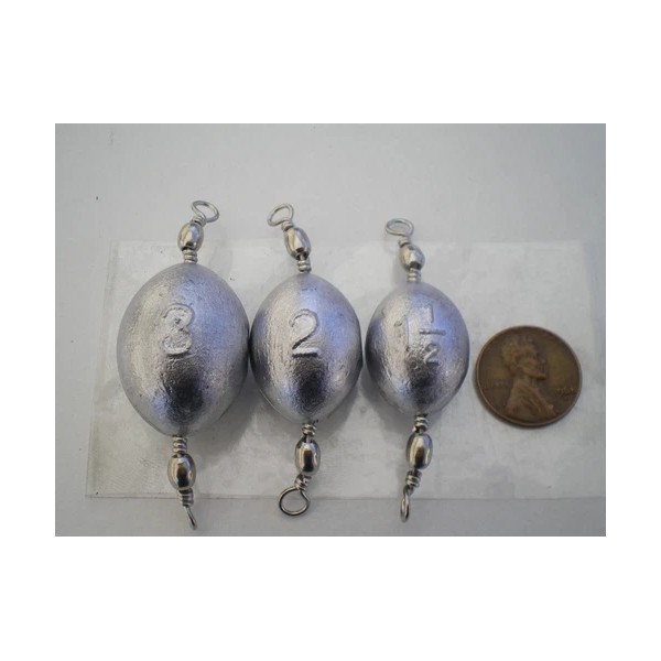 HOME MADE 15 PCS. #5 NICKEL SWIVEL EGG SINKERS 3, 2, 1-1/2 OZ. 5 EA. G/QUALITY "STRIPER"