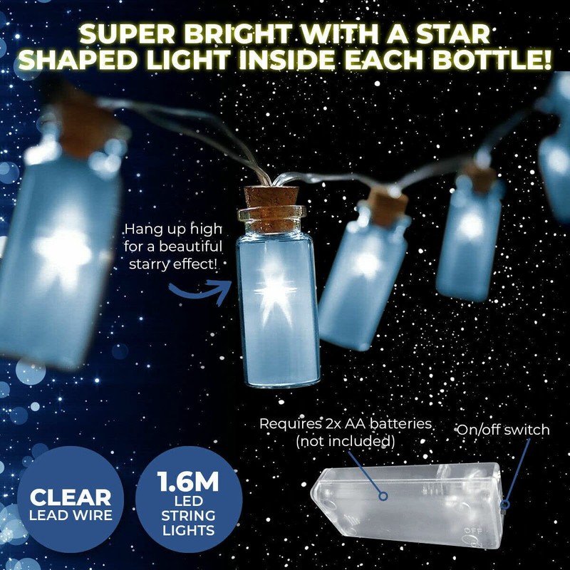- Beautiful star shaped mini glass jar string lights