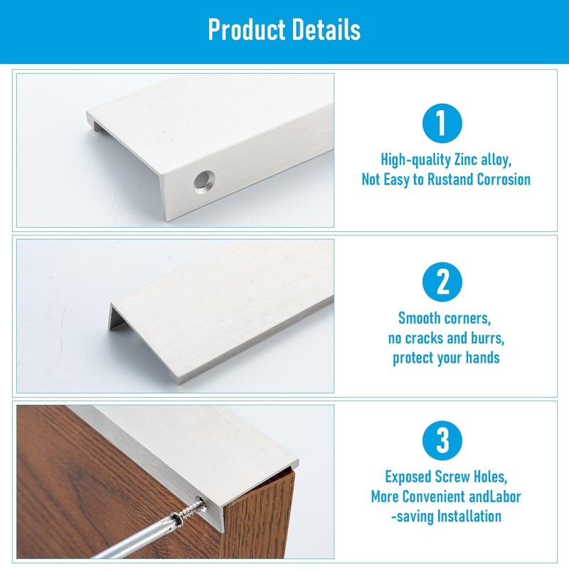 - Application:Drawers Edge Pulls is suitable for different styles of cabinets, living room furniture, kitchen cupboards, bathroom drawers