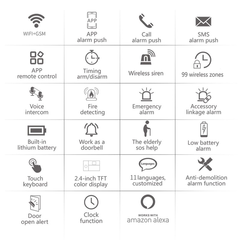 - Excellent Compatibility: The alarm is compatible with video cameras, smart sockets, smart switches and other for Tuya smart devices access, reserved for remote GPRS TCP UDP protocol channels, compatible with multiple alarm centre networking protocols