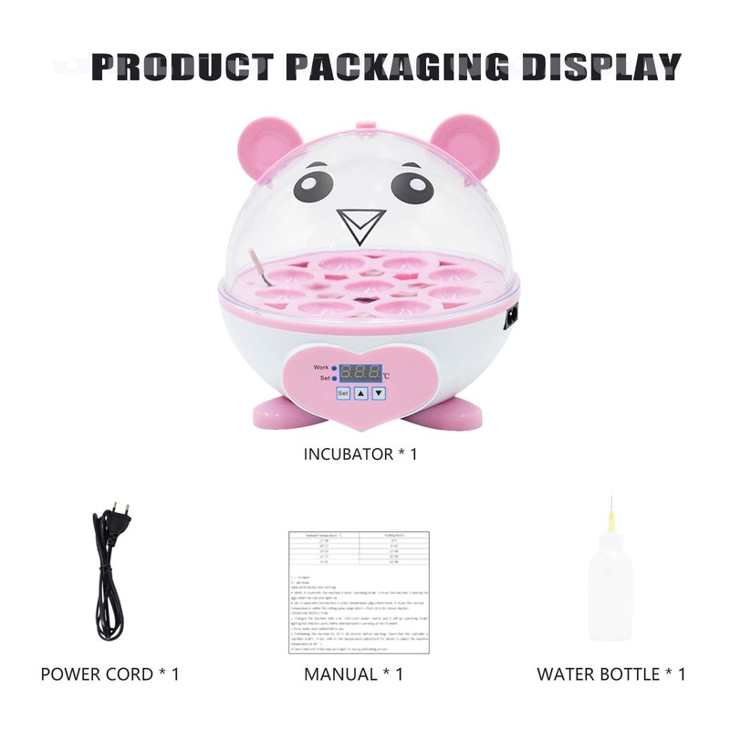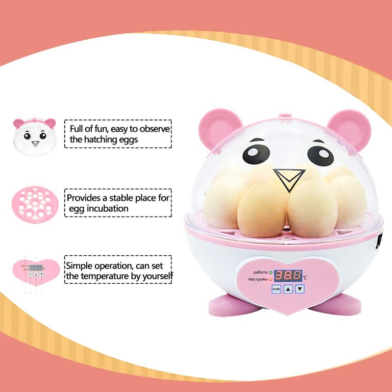 Home Use Incubator Automatic Temperature Control Digital Mini Egg Hatching Automatic Temperature Control Hatcher for Chickens, Ducks, Birds (HT-9eggs-pink)