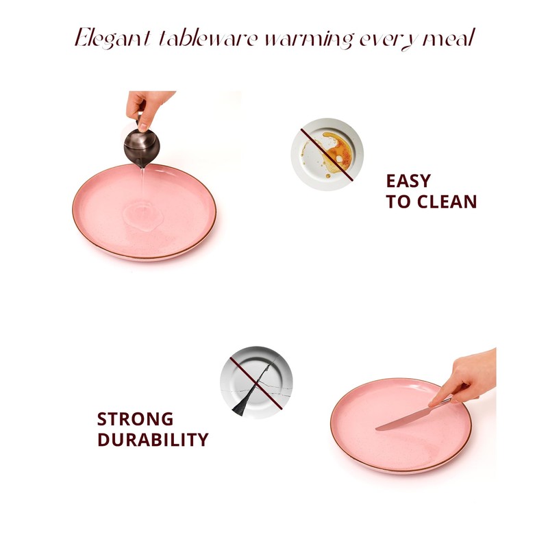 - Modern Designs: New Nordic Raising Rim Shape Featured Shiny Finished Glazed Pink with Speckled Spot and Color Banded, Make Your Table Brilliant, Attractive, Artisan, Natural, Modern and Comfortable