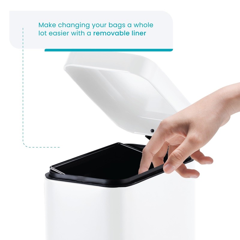 - Removable Inner Bucket: Inner liner lifts out easily for quick and clean bag changes, helping to prevent spills and maintain a tidy space