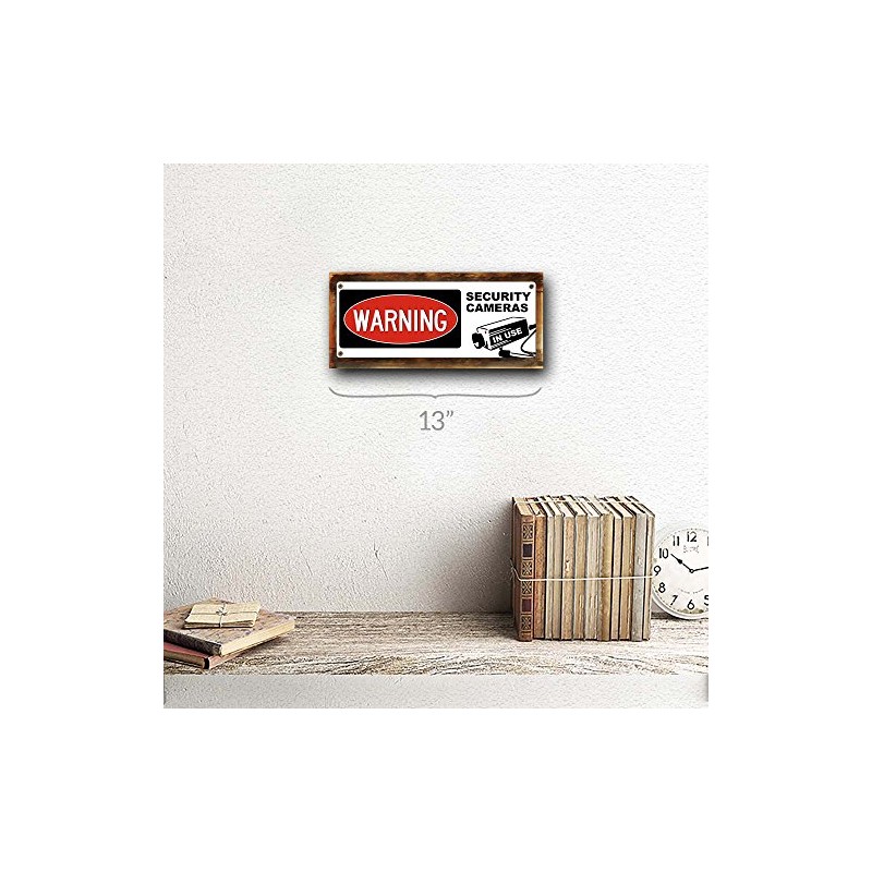 Homebody Accents Framed Warning, Security Cameras in Use 4"x12" Metal Sign, Surveillance, Safety, Guard, Hand-Crafted from Reclaimed Materials