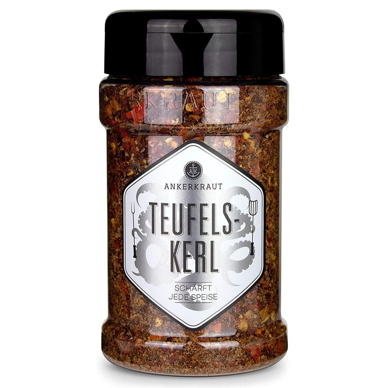 About this item Taste: Do you want to know it? Our devil's guy stands at the top of the 'sharp spices Lise'; the sharpness of this spice mix is absolutely violent; this is mainly due to one ingredient: Bhut Jolokia, or also called "The Indian Burner". [Attention sharp] This mixture is definitely suitable for refining your chili con carne recipe or the vegetarian alternative chilli sin carne; our devil guy is also good on chili cheese fries or in sweet chilli sauces; but be careful! Our devil's guy is not for delicate (taste) nerves. Best quality: without flavour enhancers and artificial colours; the ingredients are freshly sourced, transferred into the practical, UV-protected Ankerkraut shaker and sent to customers after a very short storage time. All-rounder: The mixture can also be used for sharpening vegetables or other vegetarian and vegan alternatives, such as curries with tofu or halloumi. Our insider tip is the refinement of dark chocolate, towards a delicious sharp-sweet chili chocolate. Gift idea: This sharp spice is also perfect as an extraordinary gift for friends, acquaintances or family; but keep our devil guy away from children and delicately stringed.