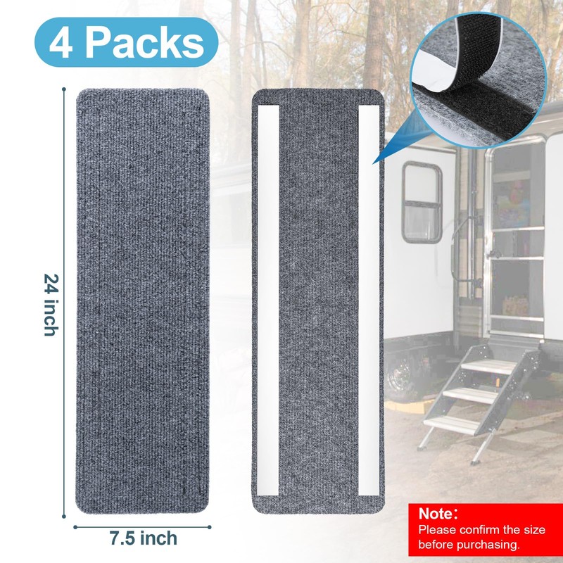 • 4 Pack RV Step Carpet - The ideal accessory to enhance the safety and comfort of your RV or camper.These durable step covers add style to your vehicle while providing superior protection against slips and falls, while reducing soiling and keeping your RV's interior clean.