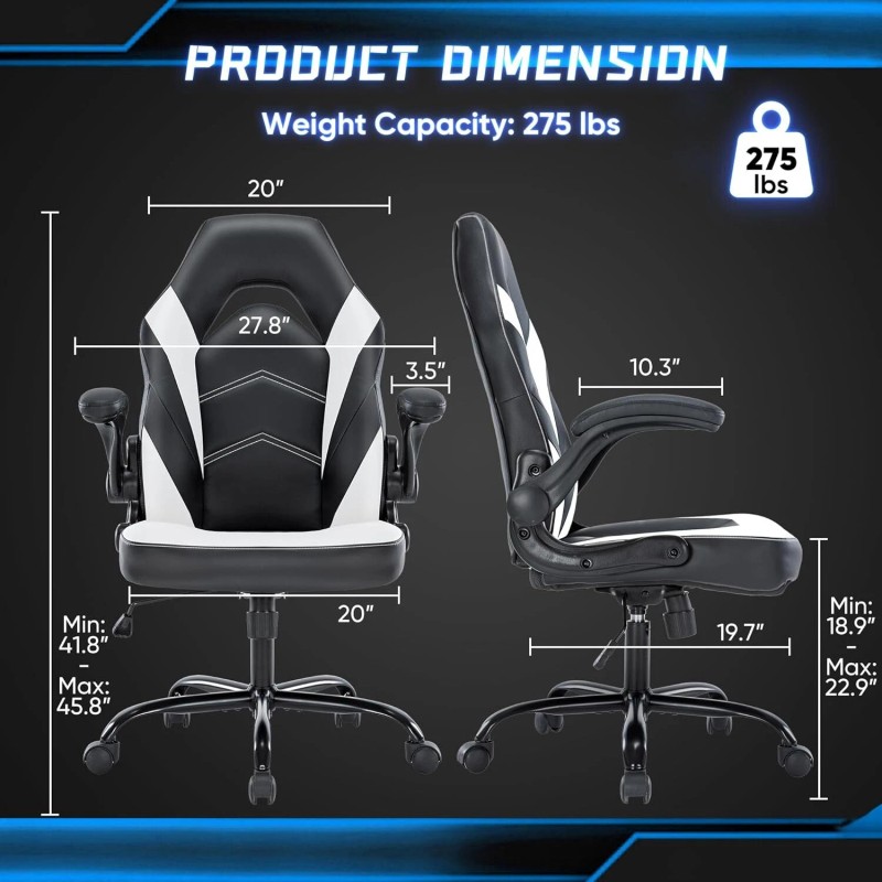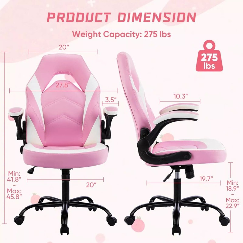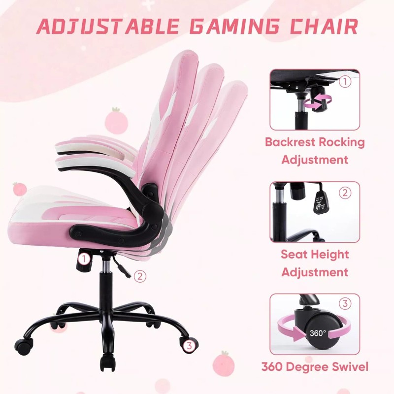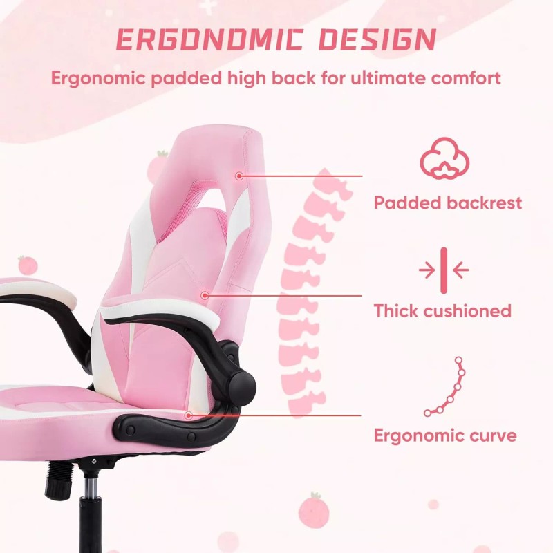 HOMEFLA Computer Gaming Desk Chair Ergonomic Lumbar Support with Flip-up Armrest - White-pink