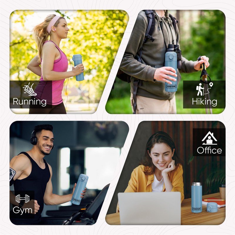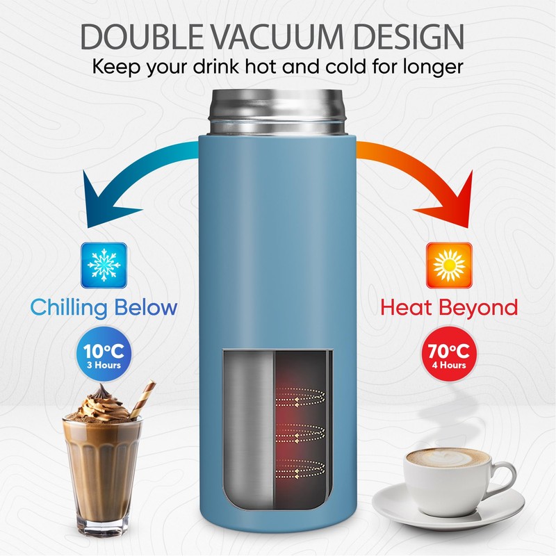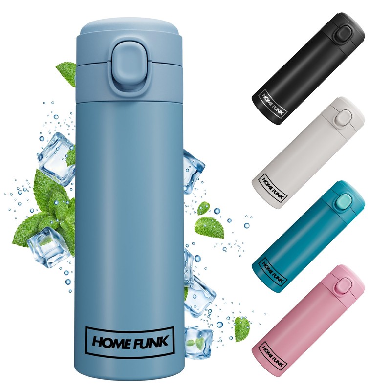 HOMEFUNK Insulated Stainless Steel Water Bottle Flask for Hot and Cold Drinks Coffee and Baby Bottles Hot Water Flask Thermal Flask 420ML (Cool Blue)