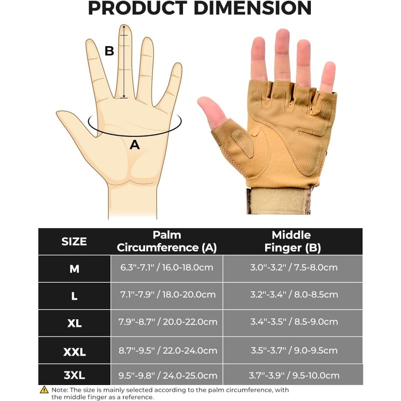 Homefy Tactical Fingerless Gloves for Men Large Beige