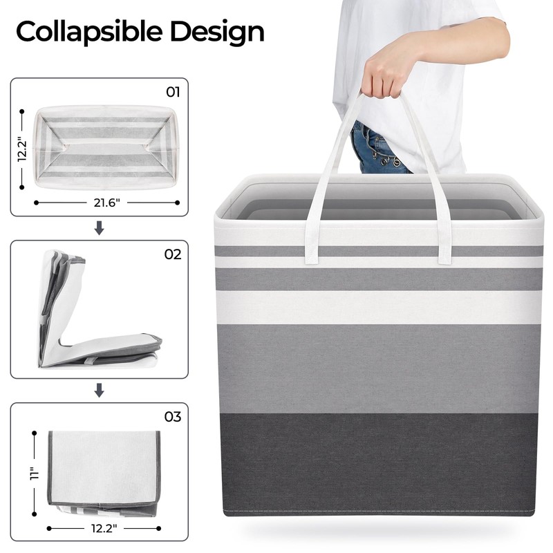 - [Portable Collapsible]The collapsible laundry bin folds up easily for compact storage, ideal for home, campus, camping, apartments, hotels and shopping.