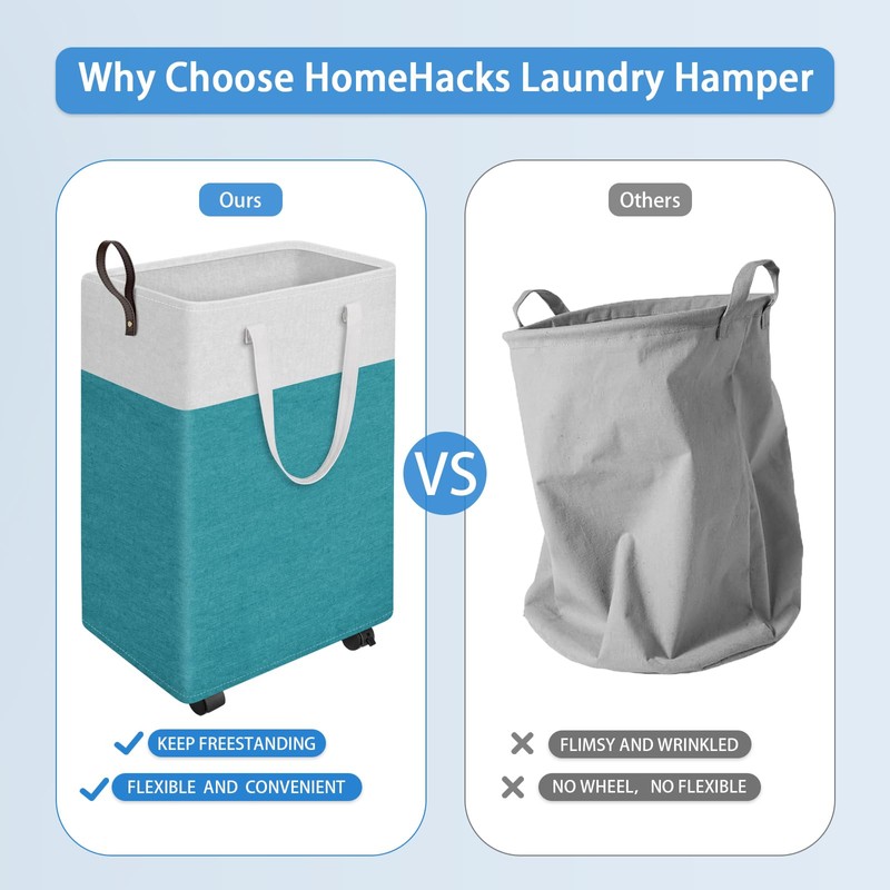 - Extra-Large Size & Ample Storage: HomeHacks wheeled laundry basket measures 11.81''L x 15.75''W x 24.81''H with a 75L capacity. The large design provides ample storage space, easily accommodating a variety of clothing, including T-shirts, pants, underwear, blankets, and quilts. Perfect for large families or shared living environments