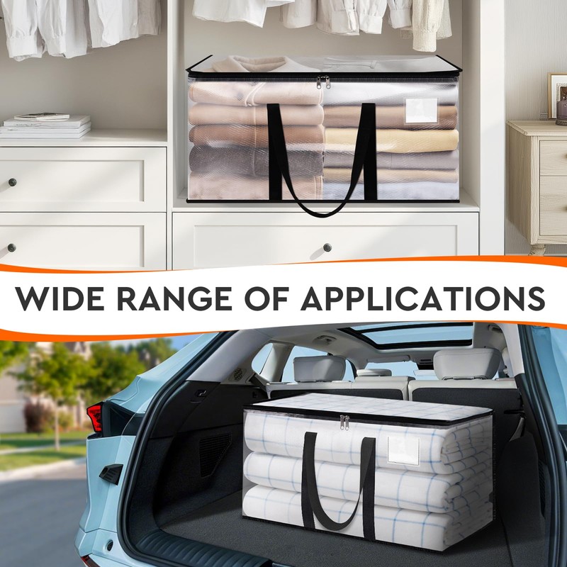 - Clear and Waterproof for Clear Visibility: Crafted from premium transparent waterproof material, these bags are easy to clean and allow you to see the contents at a glance. This eliminates the need to open each bag individually, greatly enhancing convenience and making identification of stored items fast and easy