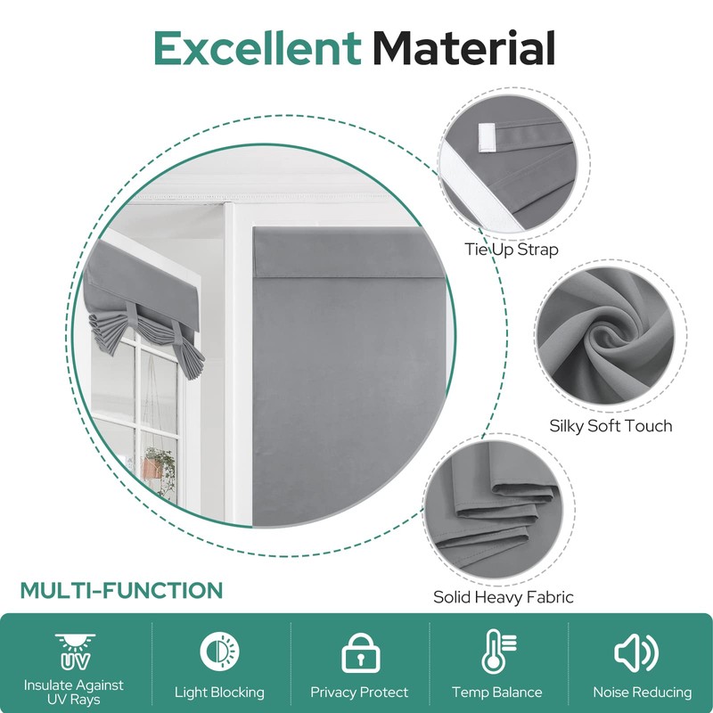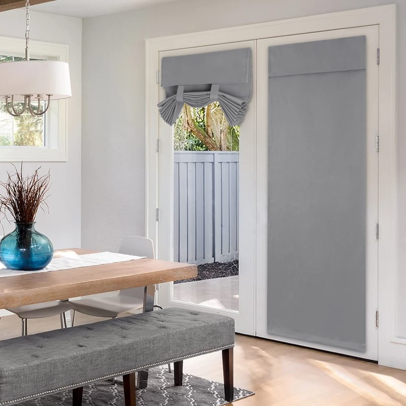 HOMEIDEAS Light Grey French Door Curtains, Privacy Blackout Door Curtains, 30 X 40 Inch Shades for Glass Window, Thermal Insulated Window Covering Tie Up Shades for Bedroom, 1 Panel