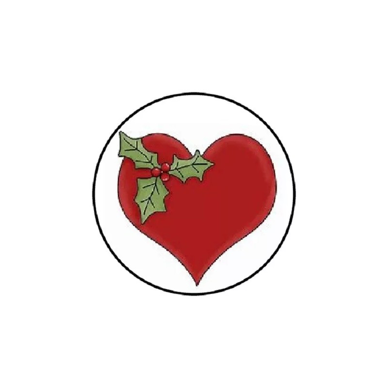 Homemade 48 HOLLY-BERRY HEART ENVELOPE SEALS LABELS STICKERS 1.2" ROUND