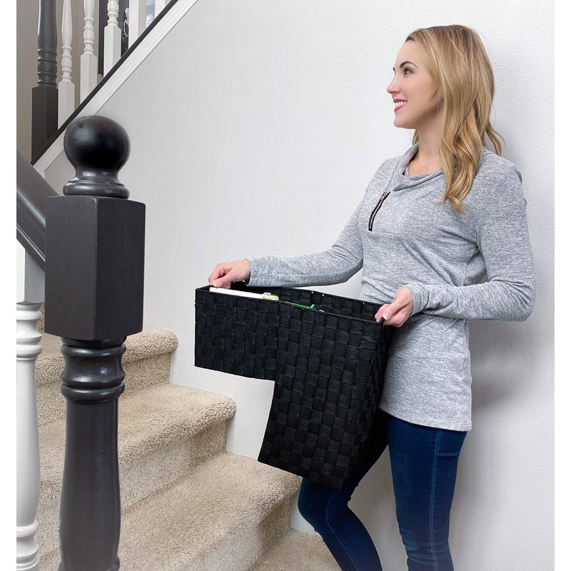 Homemodele Black Nylon-Woven Stair Step Basket with Handle