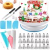 - CAKE DECORATING SUPPLIES SET: cake rotating turntable, 24 piping nozzles,2 cake smoother, 3 cake scrappers cake cutter,cake pen brush cleaner ,2 coupler, 30 disposable bags,1 cake cutter perfect tools for cake lovers