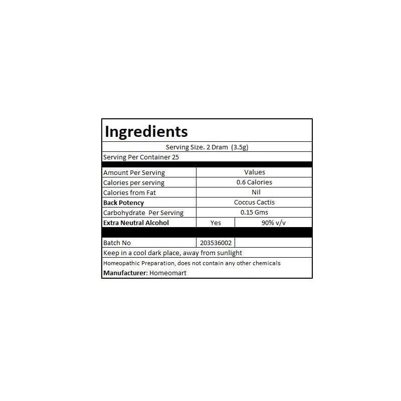 homeomart.com Coccus Cactis Homeopathy Pellets (Pills) in 6C Potency, Pack of 3