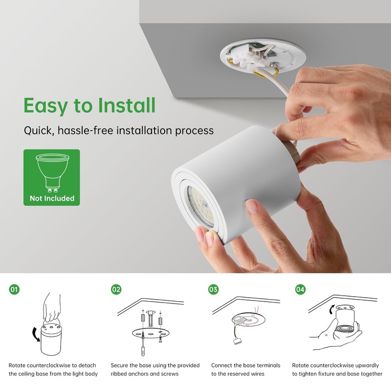 - Lieferumfang: 4 Stck deckenspots und Schraubenset zur Montage, Leuchtmittel nicht im Lieferumfang enthalten.