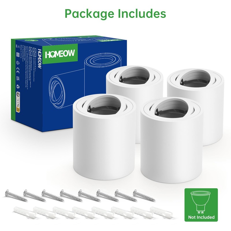 HOMEOW HOMEOW 4 Stck Deckenspot Wei? - Aufbauspot 30 Schwenkbar Geeignet fr GU10 & LED Module (Ohne GU10-Lampe), ? 80mm Aufbaustrahler aus Aluminium, Spots Deckenleuchte Aufputz, Rund
