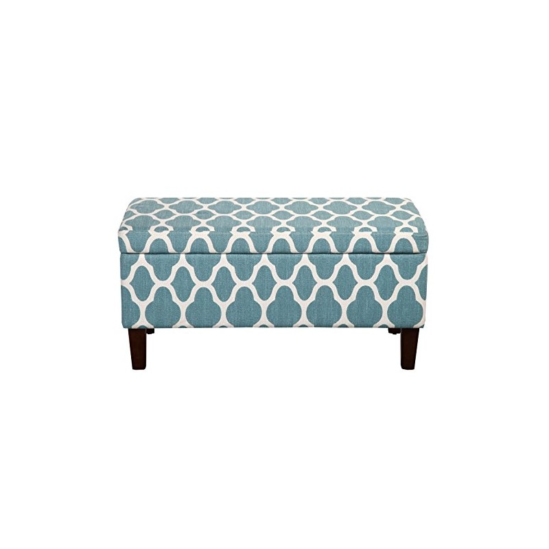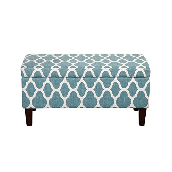 HomePop Large Upholstered Rectangular Storage Ottoman Bench with Hinged Lid, Teal Blue Geometric