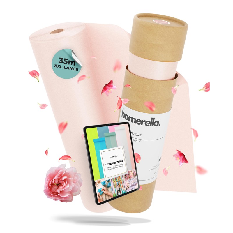 HOMERELLA® Table Runner Blush Rose [30 cm x 35 m] - Fleece Table Runner Roll - Table Runner - Table Runner Fabric - Table Runner for Birthday, Wedding, Christmas and Confirmation - Decoration