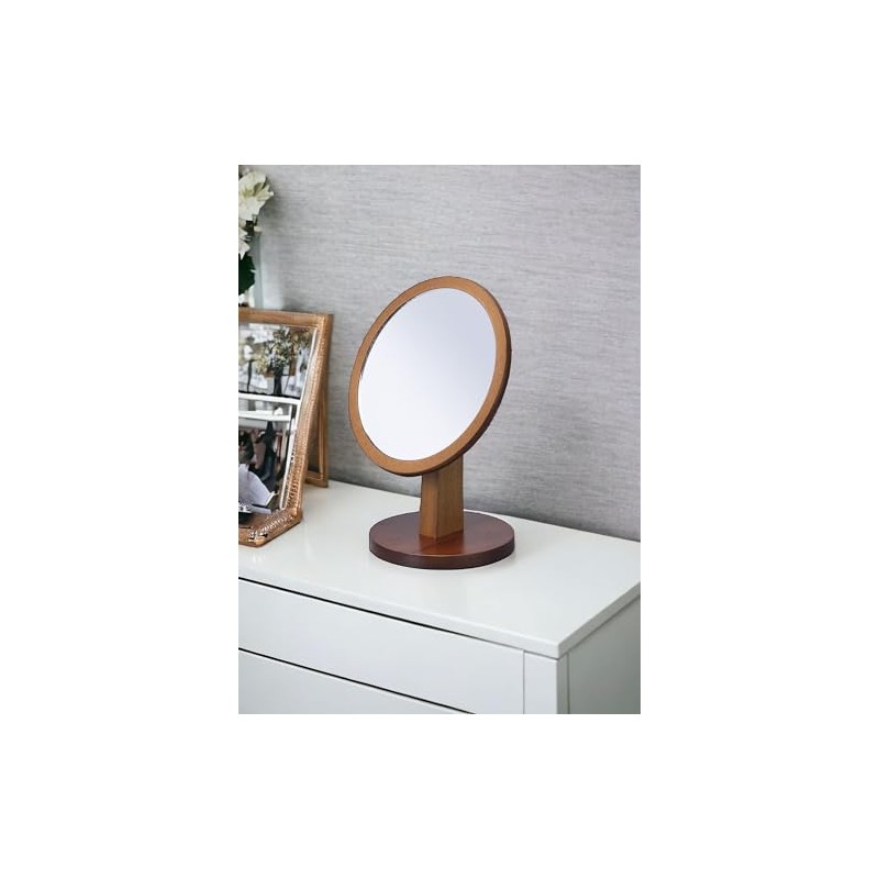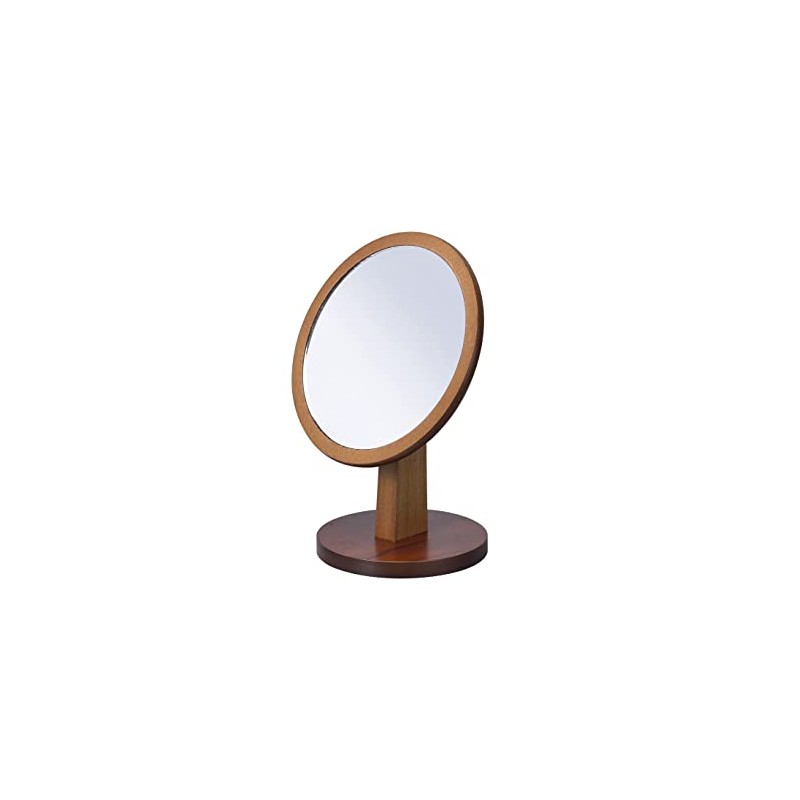 HomeRoots Brown Round Makeup Shaving Tabletop Framed Mirror