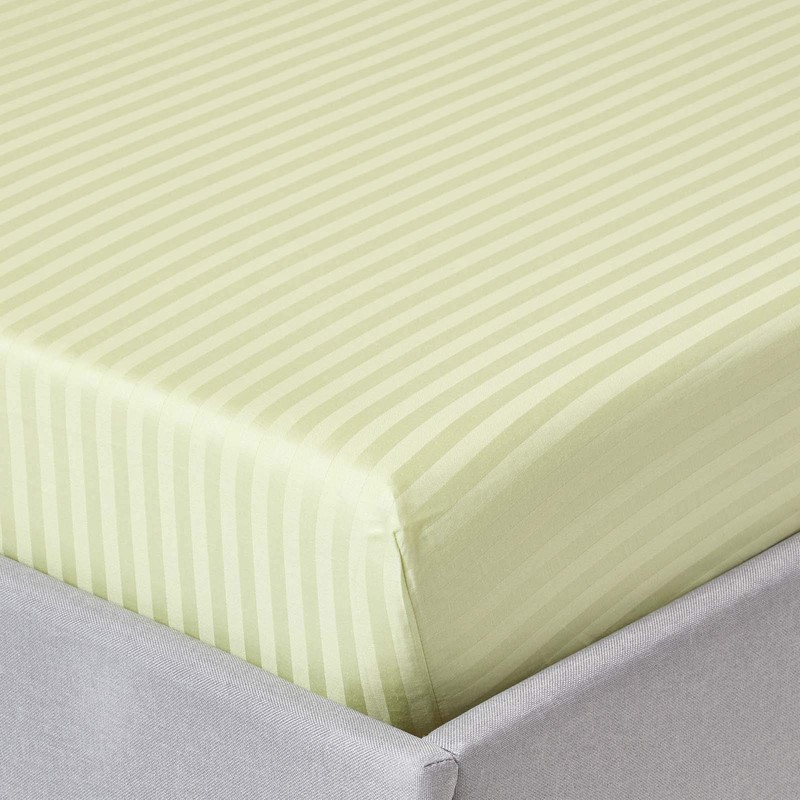 HOMESCAPES Sage Green Deep Fitted Sheet (12”) King 330 TC 500 Thread Count Equivalent Satin Stripe Pure Egyptian Cotton Bed Sheet with Fully Elasticated Skirt