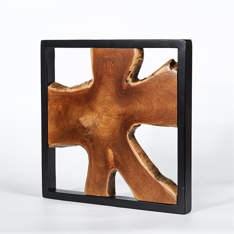HomeSoftThings Farmhouse Wall Art Rustic Live Edge Solid Teak Wood Decor 17"x17" Handmade Decor