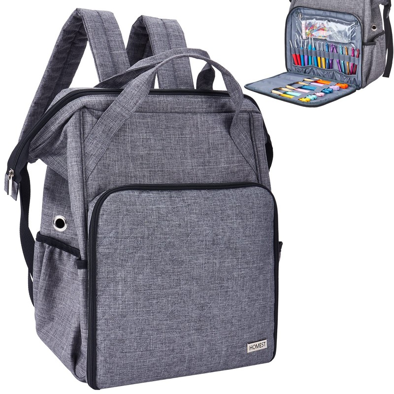 HOMEST Crochet Bag Organizer, Large Capacity Yarn Storage, Knitting Bag for Carrying Projects, Crochet Hooks, Suppliers, Needles and Accessories, Grey