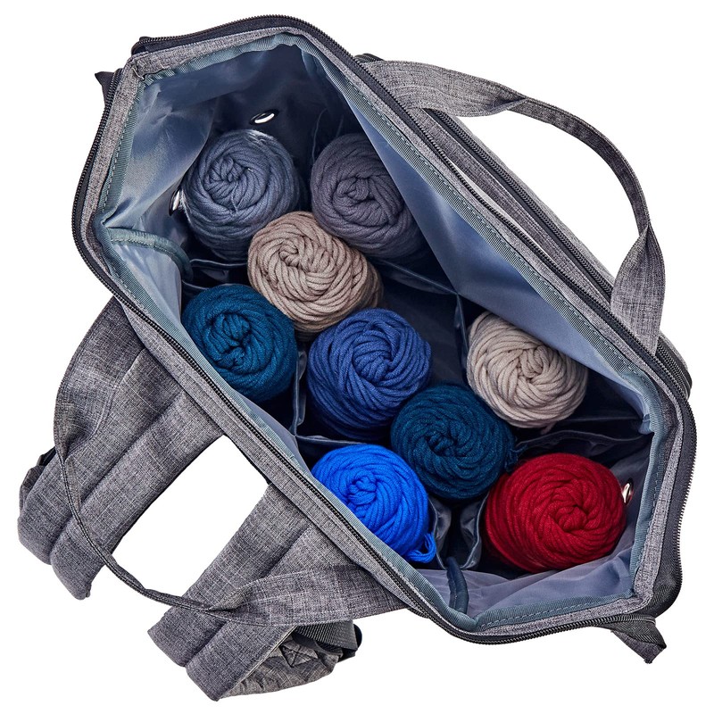 - FITS OVER 28 SKEINS - Fits over 28 skeins that weigh 3.5 oz. It is a roomy bag with lots of storage opportunities, great for traveling, a gift for knitting/crocheting friends (Bag Only)