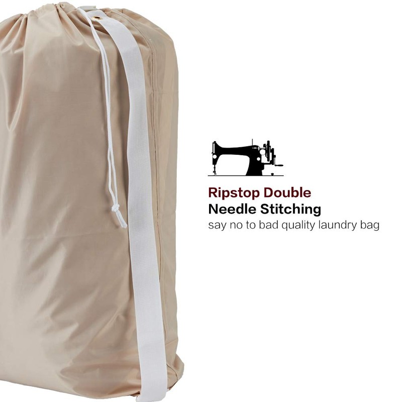 HOMEST XL Nylon Laundry Bag with Strap, Machine Washable Large Dirty Clothes Organizer, Easy Fit a Laundry Hamper or Basket, Can Carry Up to 4 Loads of Laundry, Beige, (Patent Pending)
