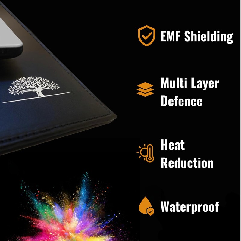 - 💼 Stylish and Durable EMF Blocker Design: Made with premium vegan leather and a sturdy core, this EMF blocker laptop mat offers a sleek, professional look and long-lasting durability, perfect for your workspace or home office.