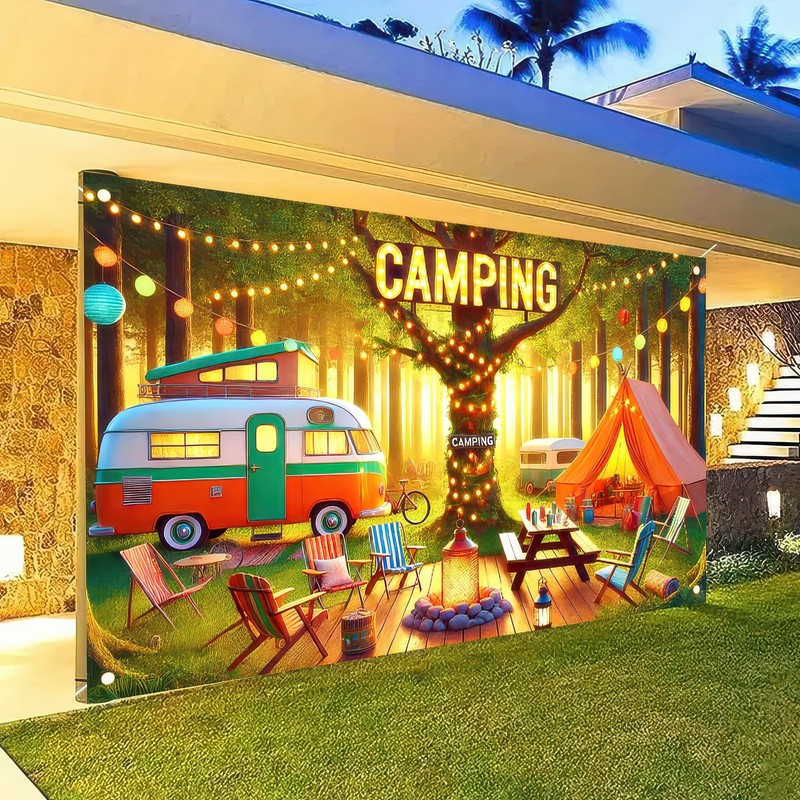 - 【Perfect Size for Versatile Decorating】Camping themed party decorations banner measuring 71 x 43 inches, this banner provides ample coverage to be a standout piece in your decor. It can be used as a backdrop for camping - themed parties, hung in a cabin or RV to enhance the camping vibe, or placed in a living room to evoke memories of outdoor escapades.