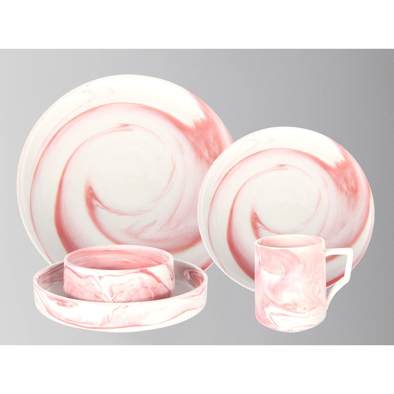 HomeVss, Fine China Artisan Marbled 20pc Dinner Set, Pink