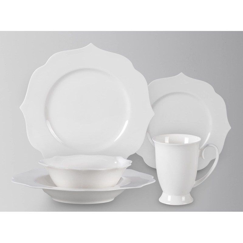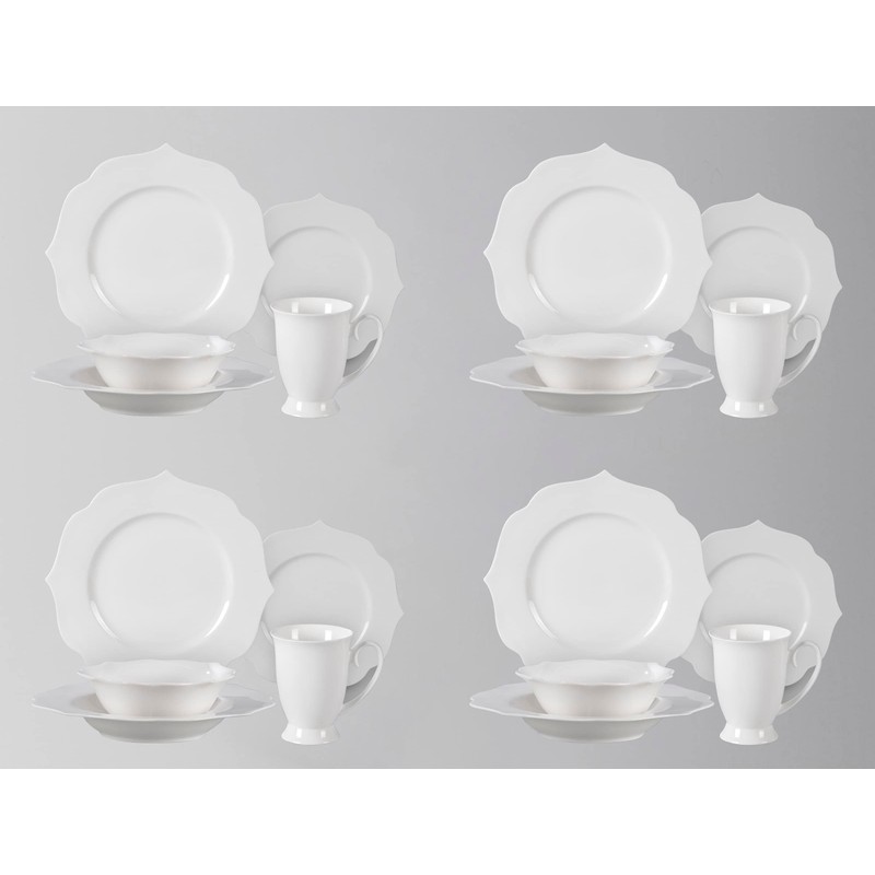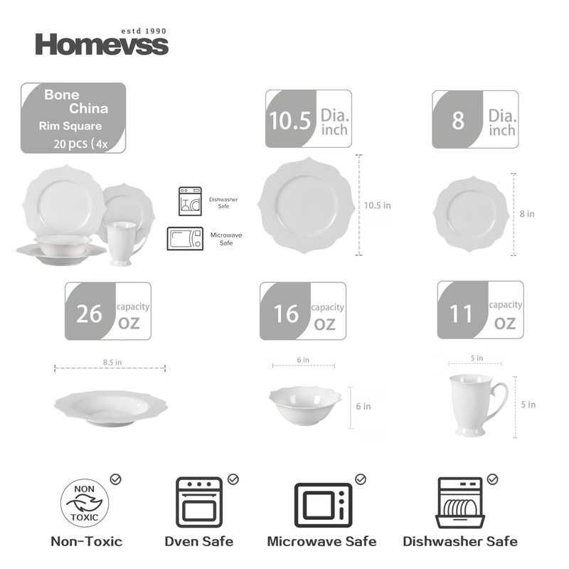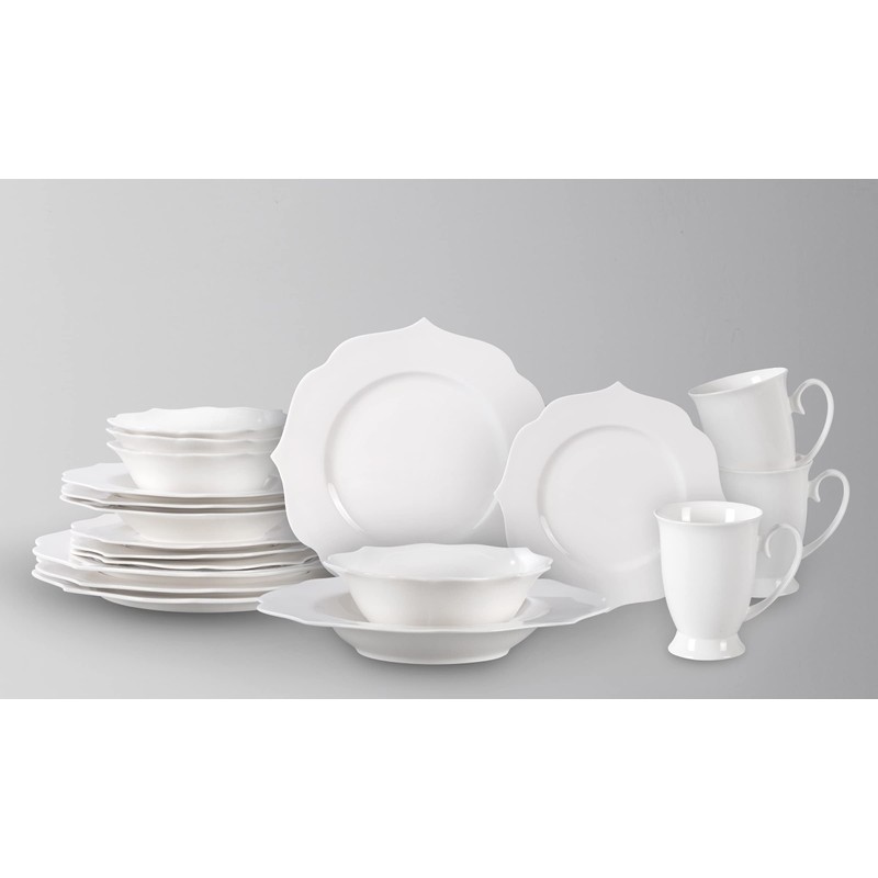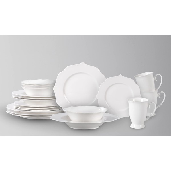 HomeVss, New Bone China Dinnerware Set, Embossed Lotus Design, 20pc Set