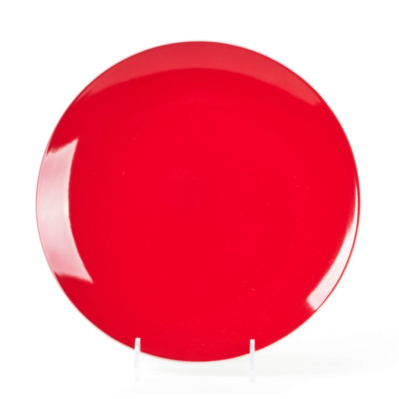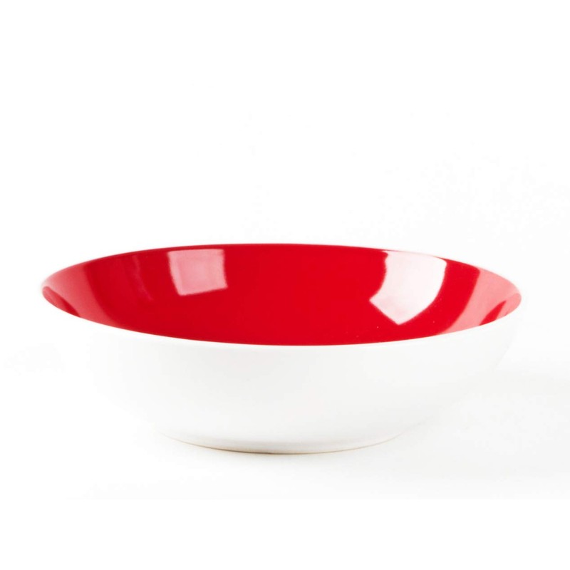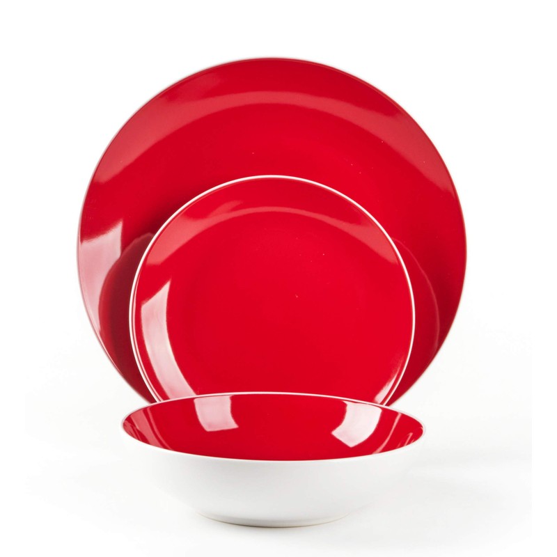 HomeVss, Stoneware Coupe Shape 12pc Dinnerware Set, Outside White + Inside Red