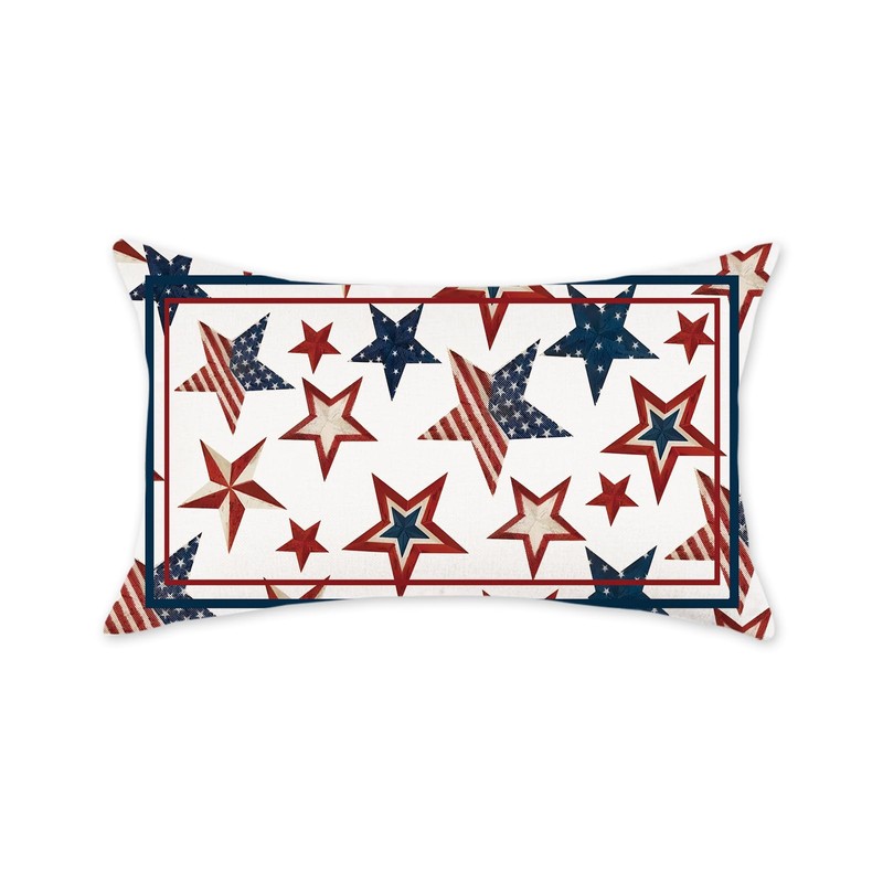 HOMFREEST 4th of July Pillow Covers 12x20 Inch Red White and Blue America Stars Patriotic Decorative Throw Pillows Independence Day Outdoor Cushion Case for Sofa Couch Home