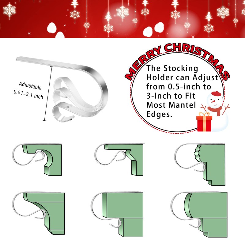 • Medidas: los ganchos de Navidad para chimenea se pueden ajustar entre 1,27 cm y 7,89 cm aproximadamente. 1,26 cm a 7,75 cm), apto para la mayoría de chimeneas.