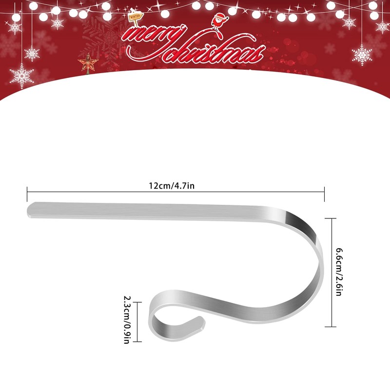 • 【Múltiples usos】El gancho de metal para calcetines se utiliza ampliamente para colgar calcetines de Navidad en la chimenea y chimenea, o colgar guirnalda ligera y hebras de luces para añadir ambiente navideño. Al mismo tiempo, también se puede utilizar para colgar ropa, bolsos, etc. En la vida cotidiana