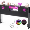 Homieasy Headboard for King Size Bed with Storage, Sturdy Bookcase Headboards with Outlet, USB & LED Light, King Size Headboard Only, Head Board with Sliding Doors & Bed Adapter for Bedroom, Black