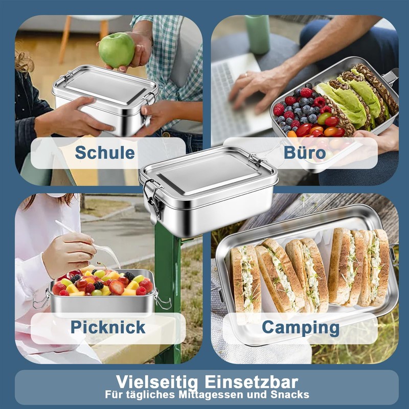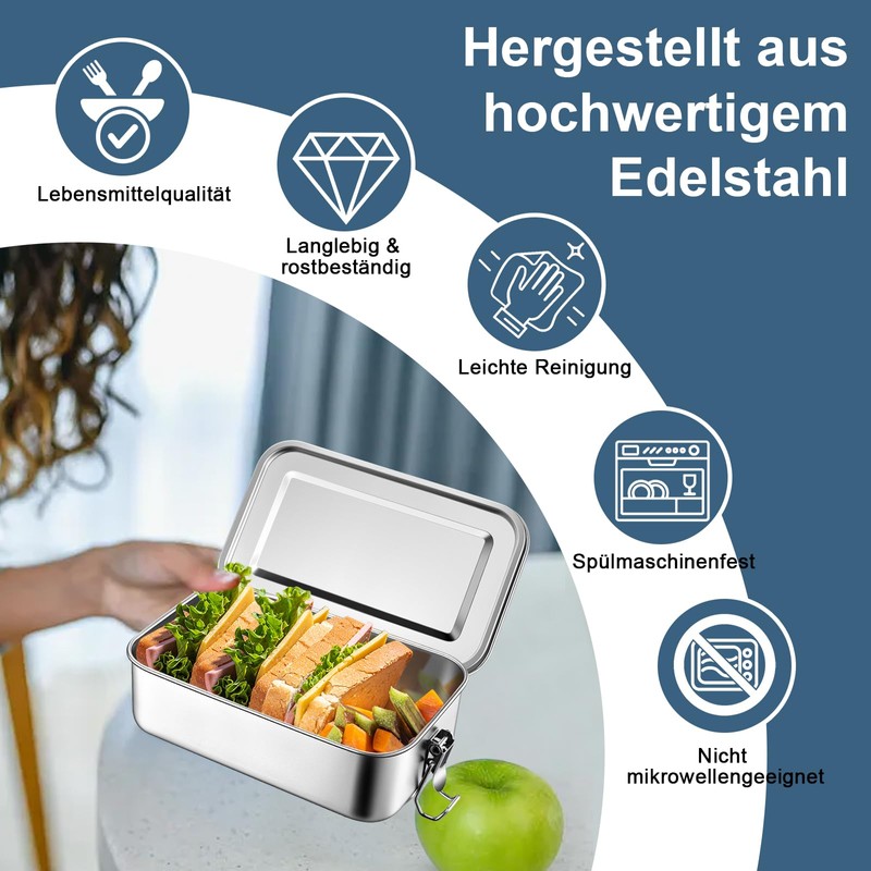 - Easy to clean - The stainless steel bento box has a finished surface for less adhesion, with warm soapy water, the food residue can be easily removed even by hand washing, it is recommended to dry it to avoid water stains after cleaning, also it is dishwasher safe, so you save yourself the hassle of cleaning and have more time preparing delicious food, please note that the lunch box is not microwave safe
