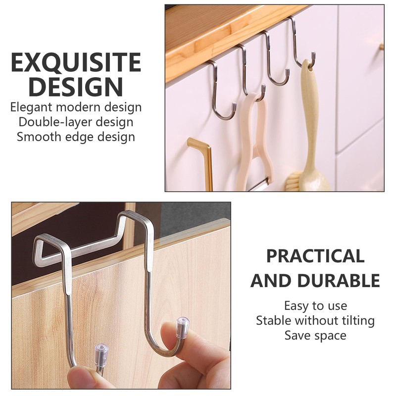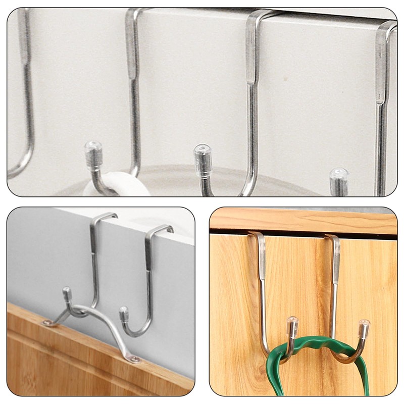 Homiladi Over Door Hooks 2PCS Stainless Steel Kitchen Hook | Multipurpose Cupboard Hooks for Hanging | Tea Towel Holders & Shower Hook | Heavy Duty for Bathrooms Kitchen Cabinet Wardrobe