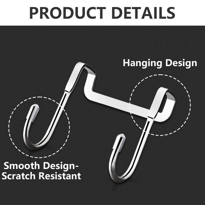 - 【Damage-Free Protection】: Stainless steel hooks prevent scratches on cabinets – double bathroom hooks hold multiple items securely
