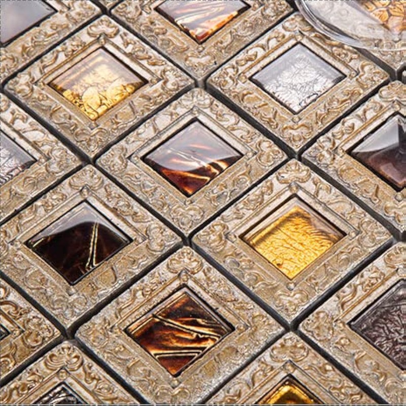 Hominter 5-Sheets Glass Resin Backsplash Tile Brown Grid Mosaic Window Pattern Kitchen and Bathroom Shower Wall Tiles GW3CJ88