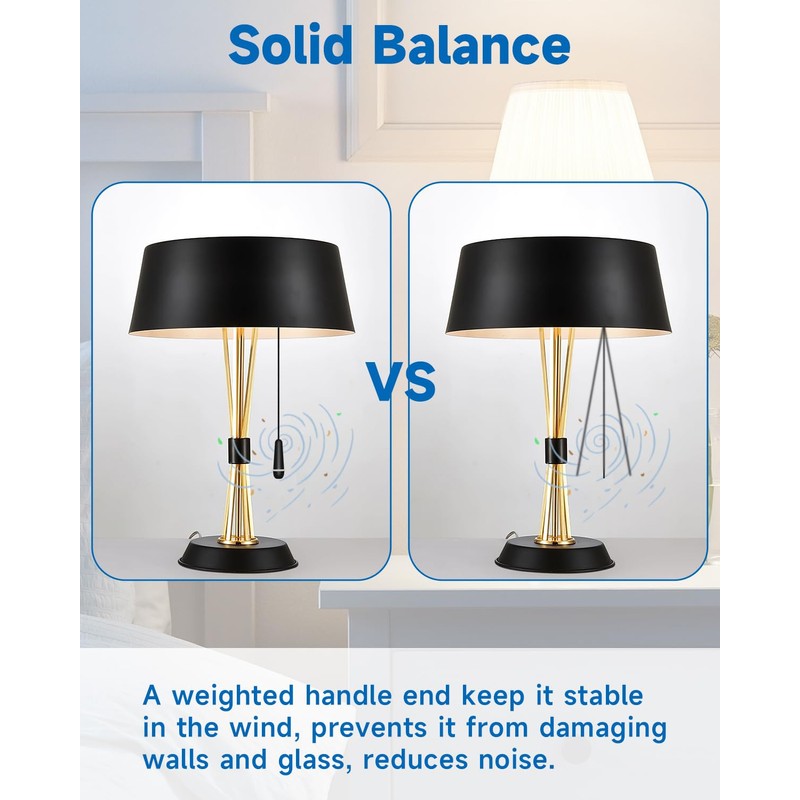 - 【Well Balanced】A weighted light pull cord handle end keep it stable in the wind. and the rubber ring around the edge prevents it from damaging walls and glass, reduces noise.
