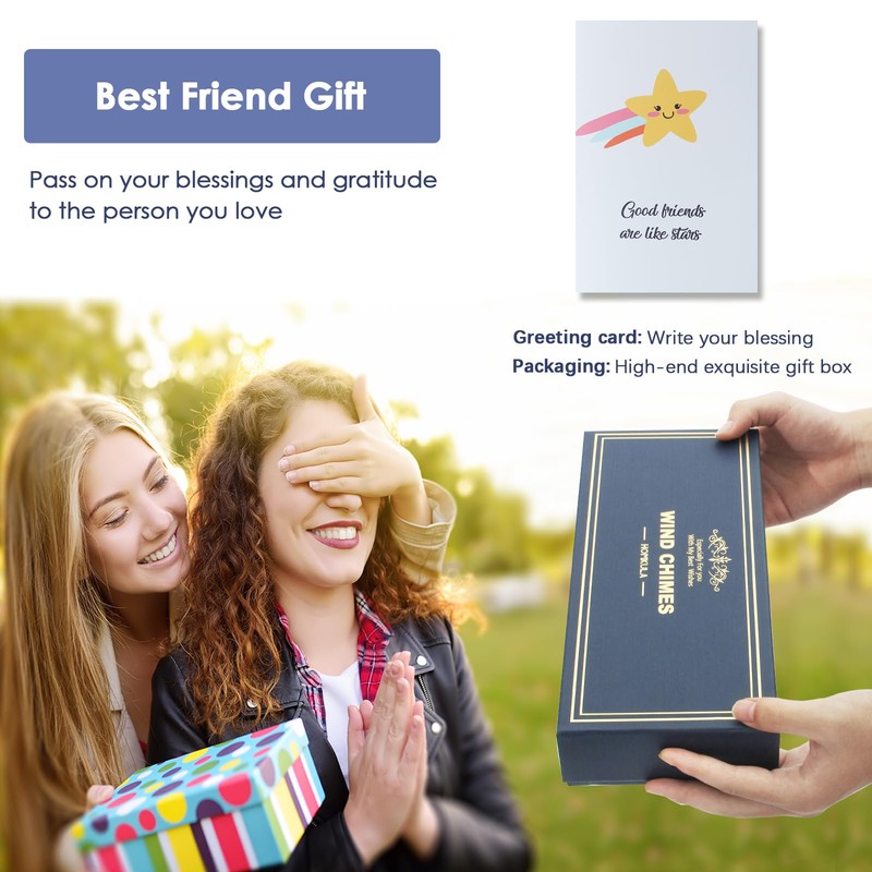 - ❤【High-quality Construction】: This best friend birthday gifts is made of solid aluminum rods, which are corrosion-resistant, rust-proof and windproof. This means they can be used all year round. The windchime will emit soft and soothing tones when blown by the wind. At this moment, it can relax our mood and relieve fatigue.