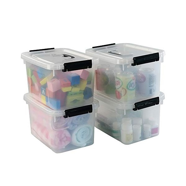 HOMMP 5 Liter Clear Storage Box Containers, 4-Pack Plastic Latching Box with Lid
