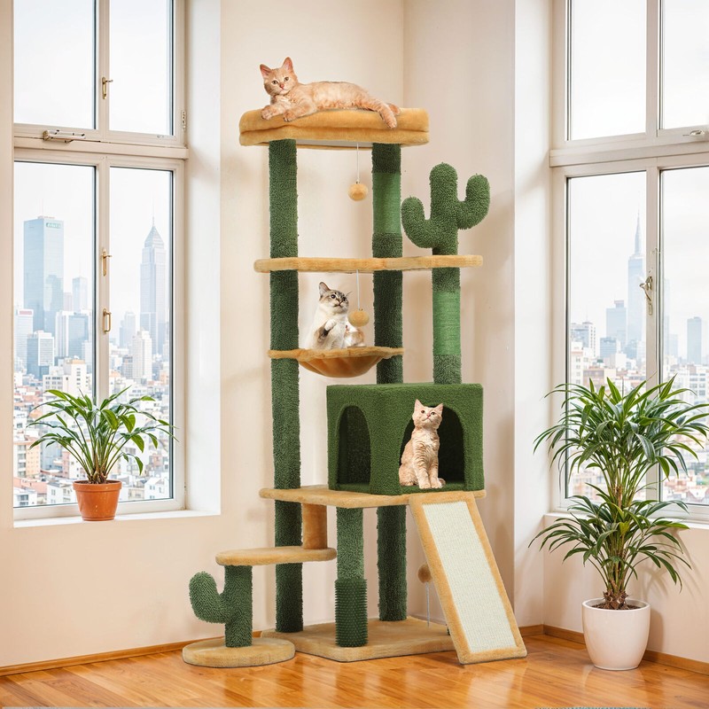 Homnia 60" Cat Tree Tower Condo Cozy Green Kitty House 20 lbs Cats with Scratching Post