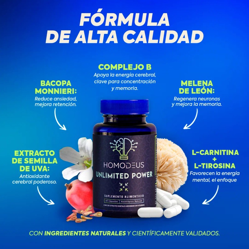 Homodeus Nootropico  Concentracin Memoria, Agilidad Mental - Producto Original de Alta Calidad, Entrega Rápida y Segura, Garantía Incluida