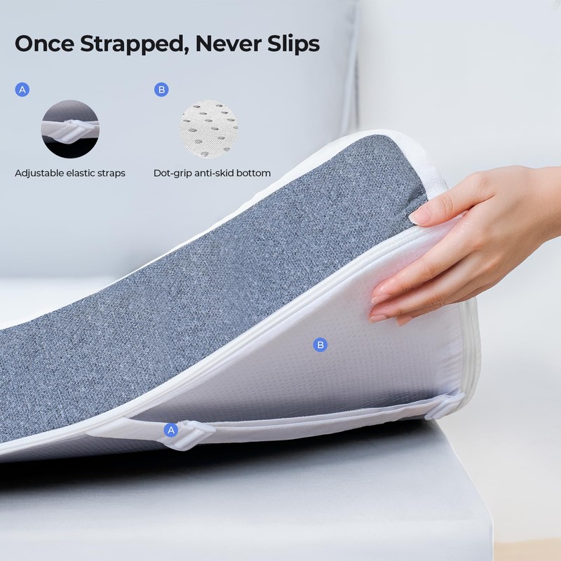 - [Easy Care & No-Slip Fit] Removable zippered cover for washing keeps your mattress topper fresh and extends its lifespan while non-slip straps & dot-grip bottom prevent shifting for uninterrupted sleep